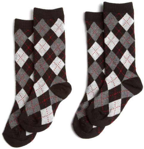 Jefferies Socks Girls 2-6X Argyle 2 Pack Knee High Hipster, Black, 7-8.5